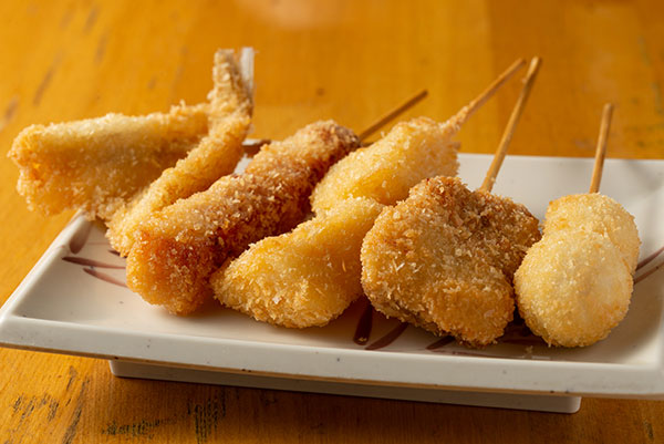 龍馬自慢の串揚げを味わってください。新鮮素材をやさしく衣に包み、丁寧に1本1本揚げていきます。